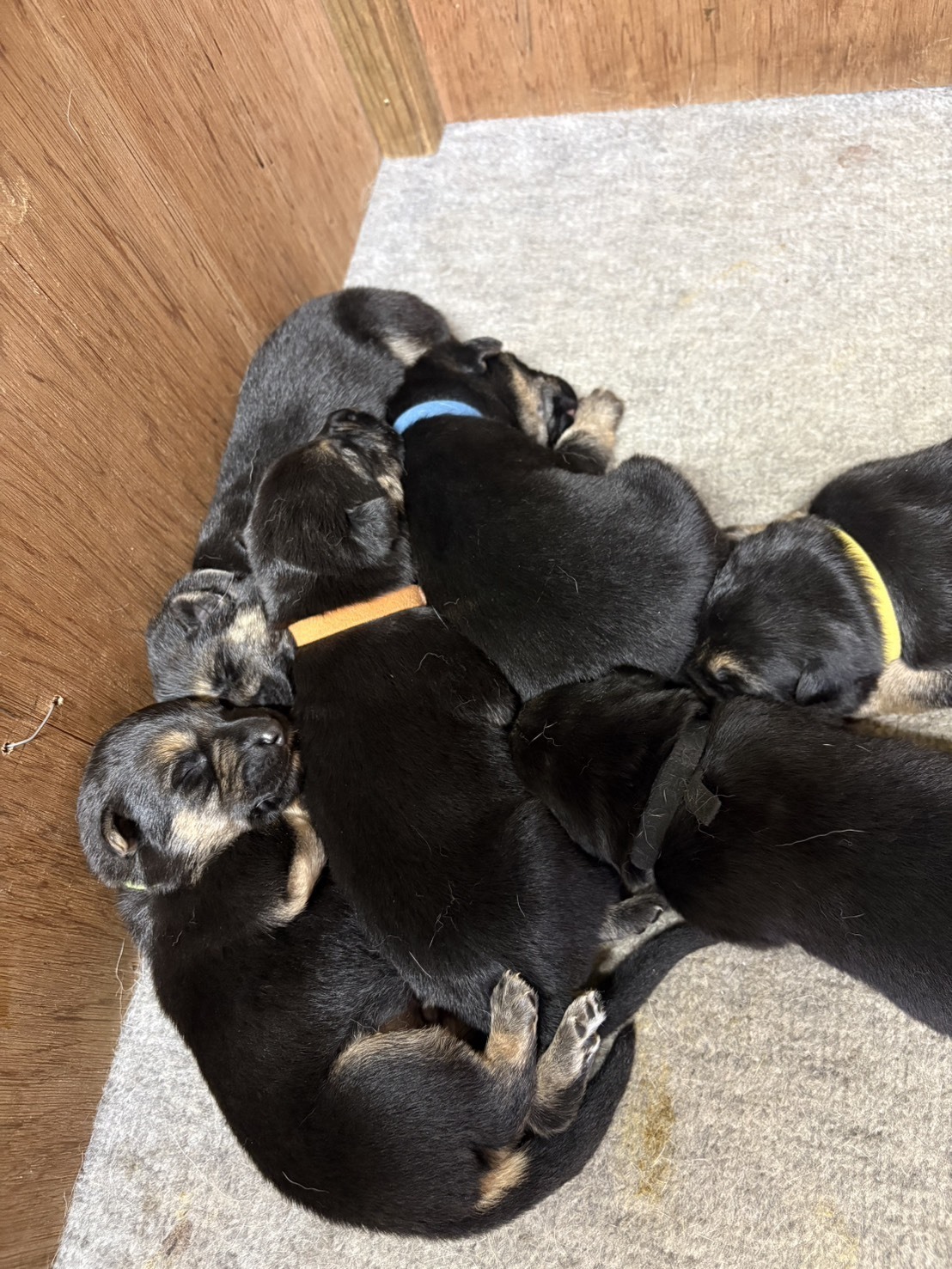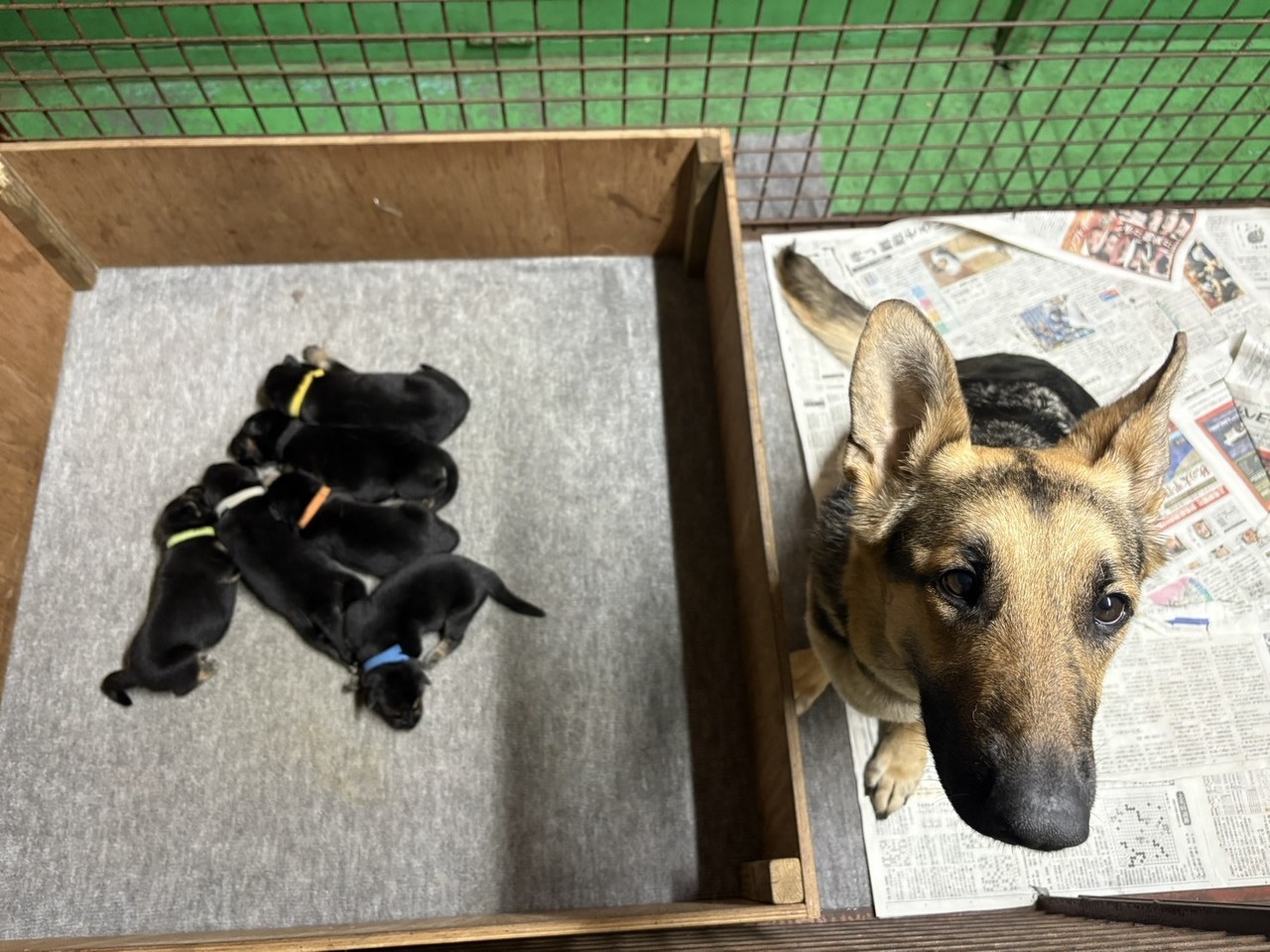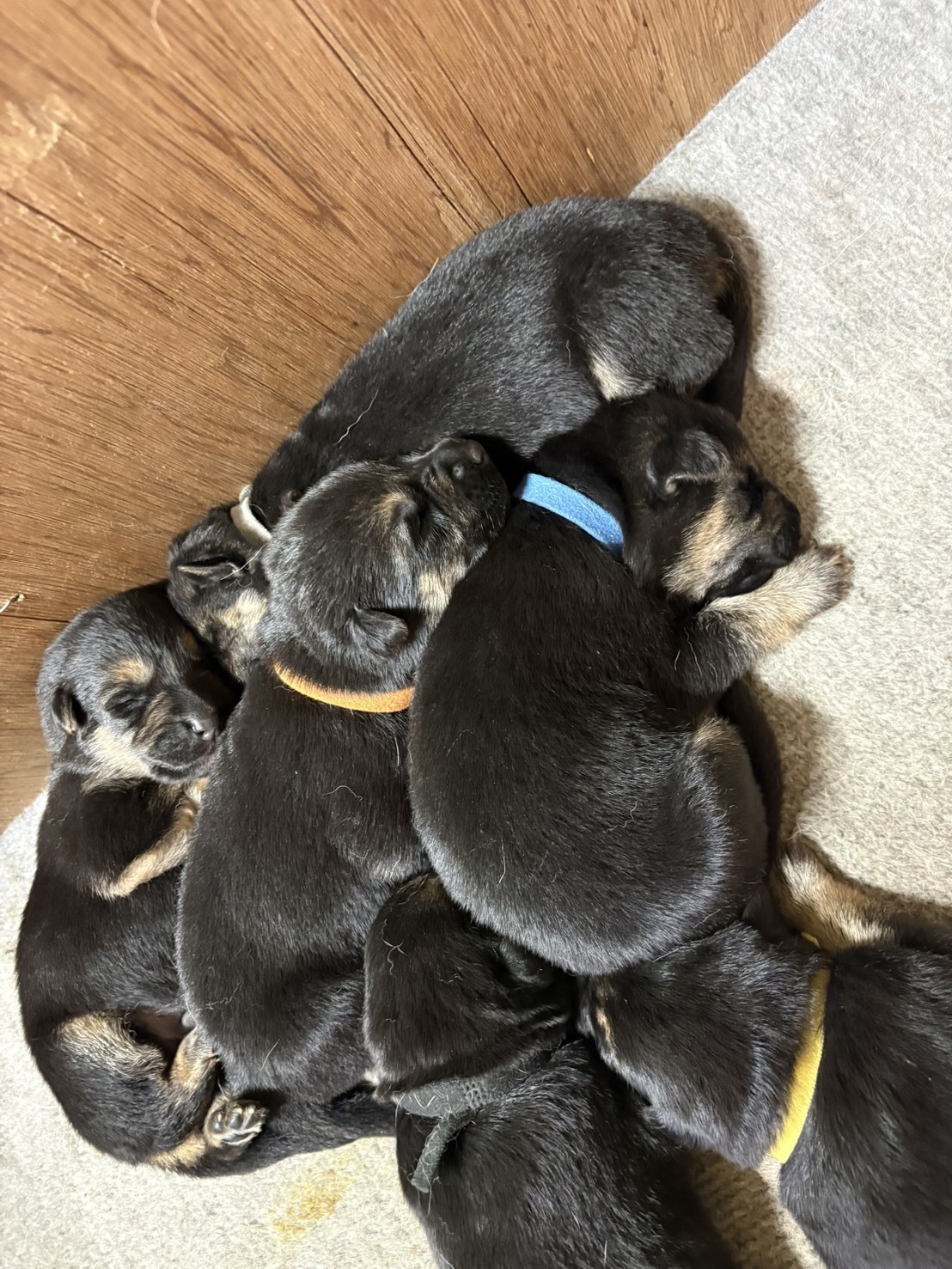 ブラックタン♀水色の首輪のこです。